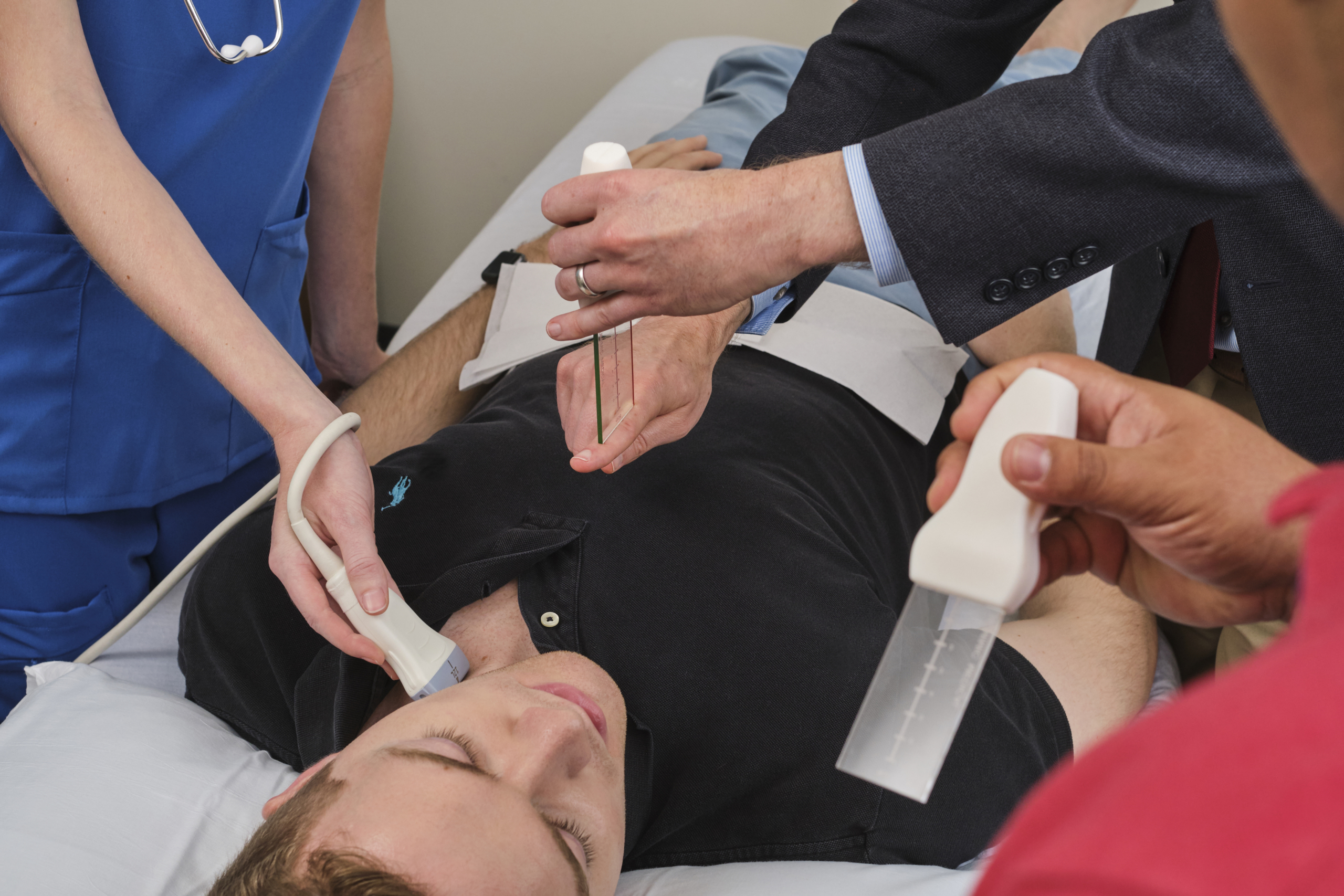 When I started teaching ultrasound, I noticed many learners had difficulty conceptualizing ultrasound probe movements and concepts like orientation and planes of cut. It reminded me of my days as a Navy physician when I struggled to familiarize myself with the different movements of a plane, terms like pitch, yaw and roll. It was hard for me to visualize in my mind the plane actions until my flight school instructor brought a small plane on a stick and waved it around while lecturing. My wife and I started experimenting at home and created the ultrasound fan/ultrasound teaching tool to help learners conceptualize probe movements at the bedside. On our teaching routes all over the country, learners loved the tool and wanted their own which lead to our collaboration with Humimic to make it more durable and widely available. – Dr. M ~ Upstate South Carolina